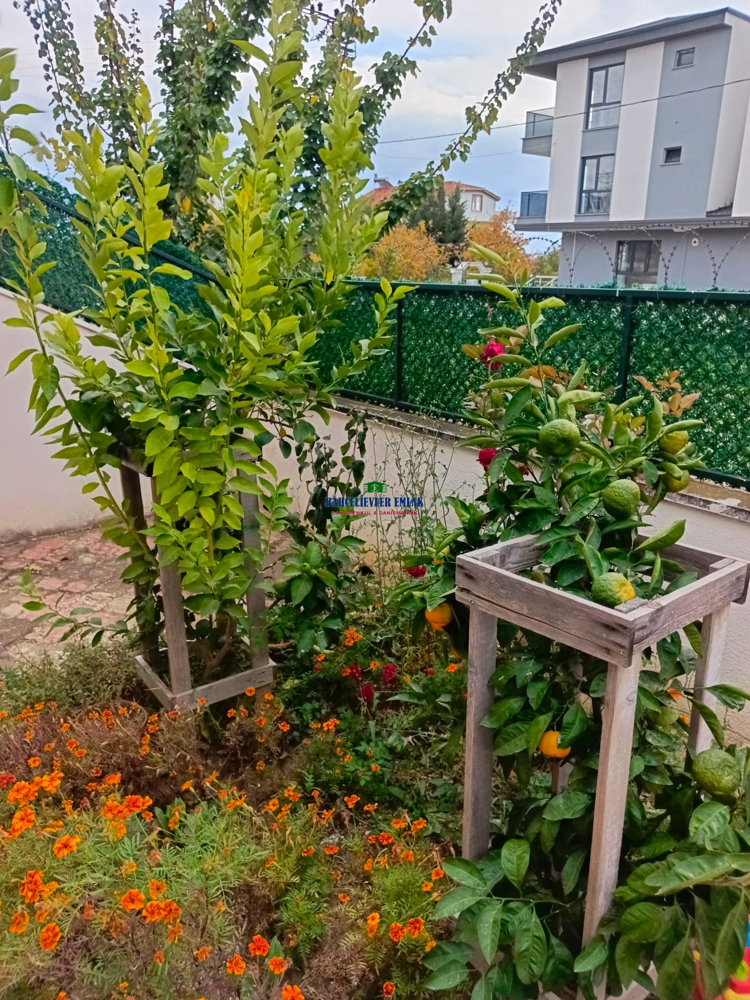 BAHÇESİNDE; MANDALİNA, LİMON, VİŞNE VE ERİK AĞACI VARDIR.